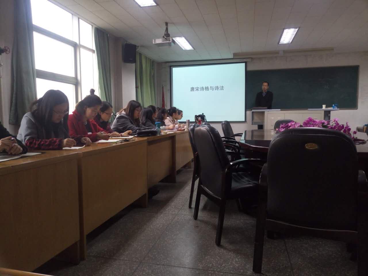 下午4:00点,vsport官方网站副教授、硕士生导师郭庆财老师在12号楼5层会议室作了题为“唐宋诗格与诗法”的学术报告。中国古代文学专业的研究生到场听取了此次报告。