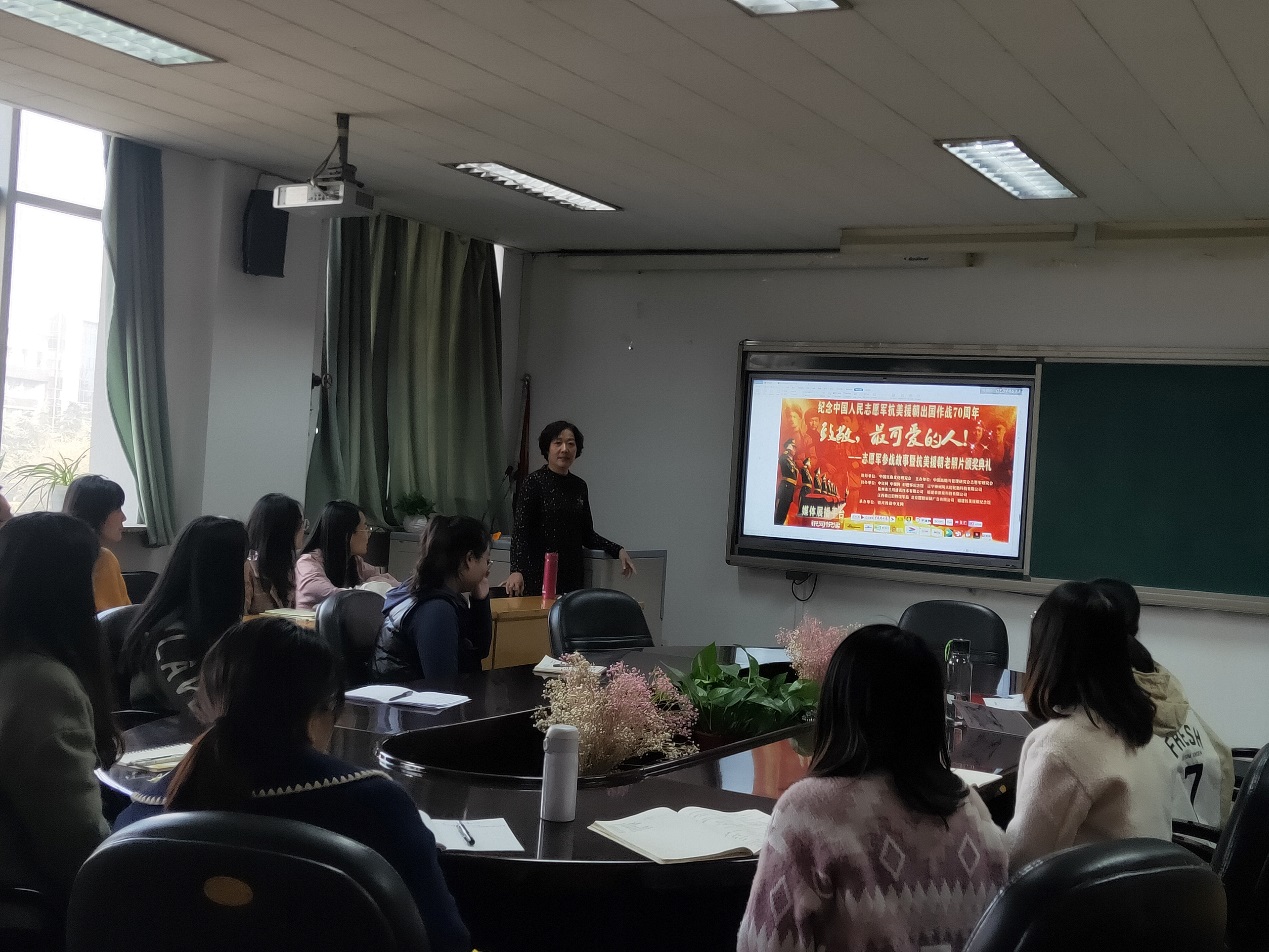 在“弘扬与爱国”部分,张老师梳理了当代文学发展过程中,那些给读者留下深刻影响的抗美援朝作品,引领大家一起回顾经典之作《三千里江山》、《东方》、《谁是最可爱的人》等名作名著。她告诉同学们,文化需要传承,抗美援朝精神需要传承,当今老员工既是文化的受益者又是文化的传承者,希望大家能继承抗美援朝精神,把中国优秀的文化一代又一代地传承下去。
