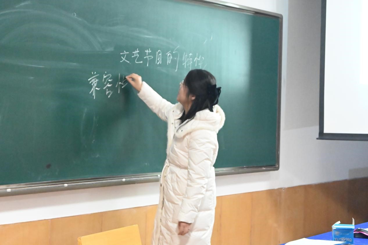 马新广介绍了写作主体对作品价值的影响,分析了作品与人物品格的辩证关系。何伟讲述了新闻摄影工作者的职业道德,通过案例进一步明确了实事求是,具体问题具体分析的方法论。黄莹在谈到作文命题的方法时提出作文命题要贴近生活,增加行文的思辨性。郭媛结合习近平总书记在文艺工作座谈会上的重要讲话分析了文学创造的情感评价。卫亭绒以名言“每一个典型对于读者都是熟悉的陌生人”引入课程主题:“文学典型”的概念。武红霞通过大禹治水、女娲补天等神话分析了其中的文化意蕴和民族精神。牛婷婷讲解了作家赵树理为配合我国第一部婚姻法的颁布所写短篇小说作品《登记》。张裕涵结合具体文艺作品分析了文艺节目的特性和文艺创作的表现方式。王画眉老师以人教点读APP为例介绍了数字出版产品编辑策六原则。