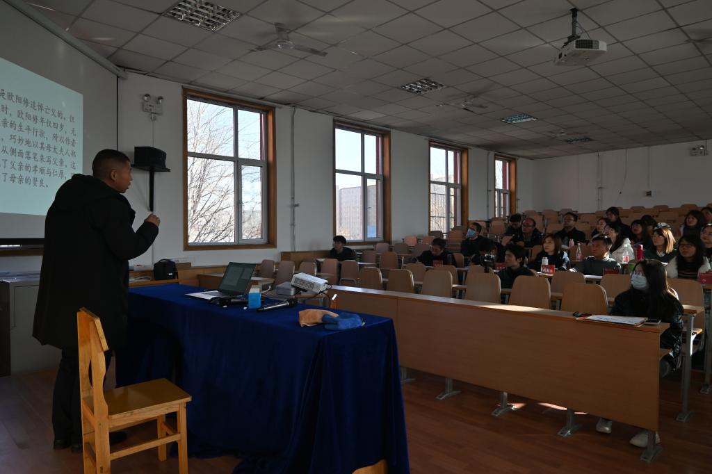 比赛过程中,教师们精神饱满、热情洋溢,充分展现教学风采,从专业角度发掘课程中的思政内涵。李晓敏以欧阳修《泷冈阡表》第三段中对其父亲生前言行的描写分析为切入点,着重分析欧阳修避实就虚的写作技巧,引导员工体会其中包含的情感价值,能够在理解文章孝道思想的同时,树立孝敬父母、认真学习的理念。鲁立智以“杜甫《望岳》中的颈联”为题,指出文学工作者,不但要有热爱祖国山河的情感,更要有表现情感的手段,像杜甫一样,用文字将祖国的山河穿越历史,变成永恒,做到真正的爱国。孙改霞的微课主题为:从“造字法”角度看古人表达“抽象词义”的智慧,她用生动的例证阐释出古人造字法的意义,指出要在古人的智慧中汲取丰富的文化内涵,热爱优秀传统文化。关黑拽主要讲述语义特征分析法的内涵和分析程序,指出要理论联系实际,引导员工用语义特征分析法分析汉语语言现象;激发母语研究兴趣,强化语言研究意识及能力。张磊以最能代表巴尔扎克艺术风格的作品之一《高老头》为题,分析主人公极端、畸形的父爱,揭示了父爱悲剧的原因和小说蕴含的深意。