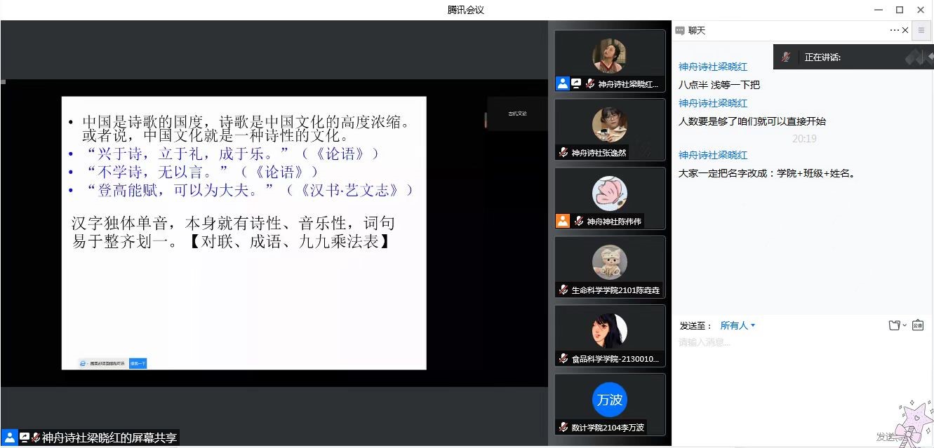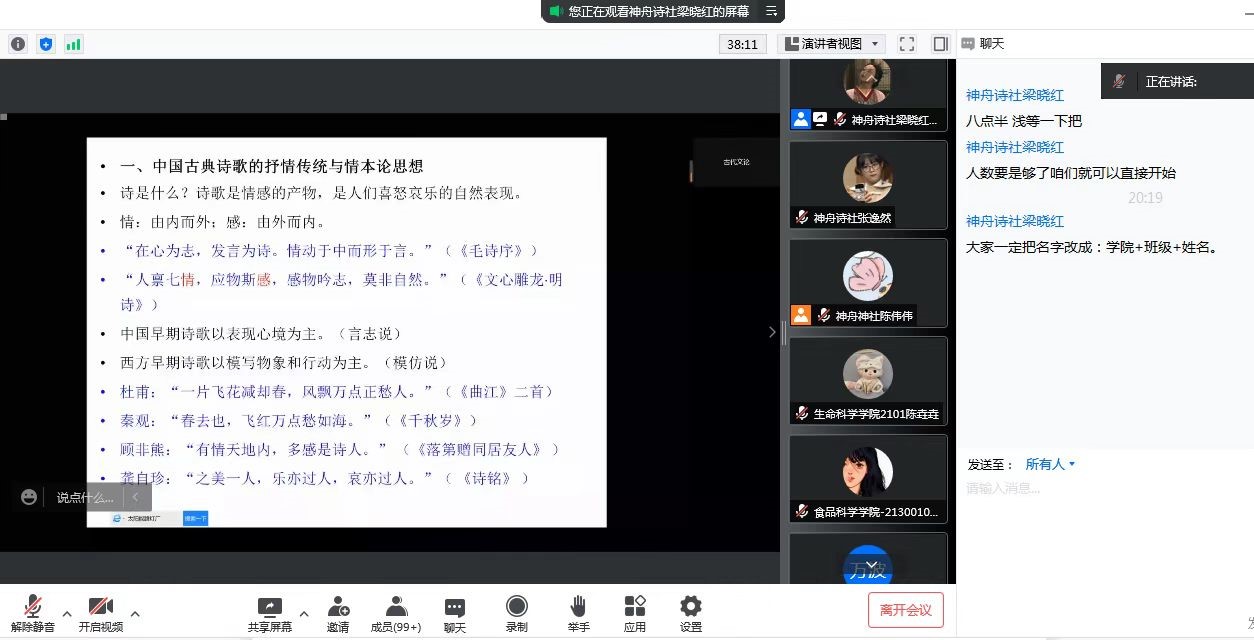 4月21日,vsport官方网站神舟诗社在线上举办了“赏诗词之韵,鉴名家之情”诗词讲座。本次讲座由vsport官方网站郭庆财老师担任主讲,约400人聆听。