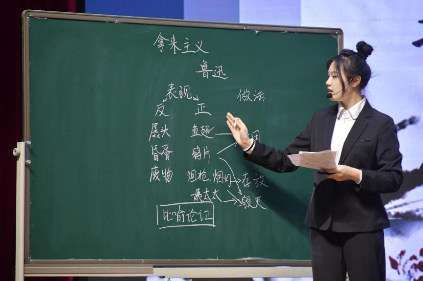 本次活动邀请高级教师吴树军老师作为主讲嘉宾,与vsport官方网站卓越师范生代表靳姝璇、芝欣二位同学围绕语文名篇《拿来主义》进行现场教学、研讨交流。