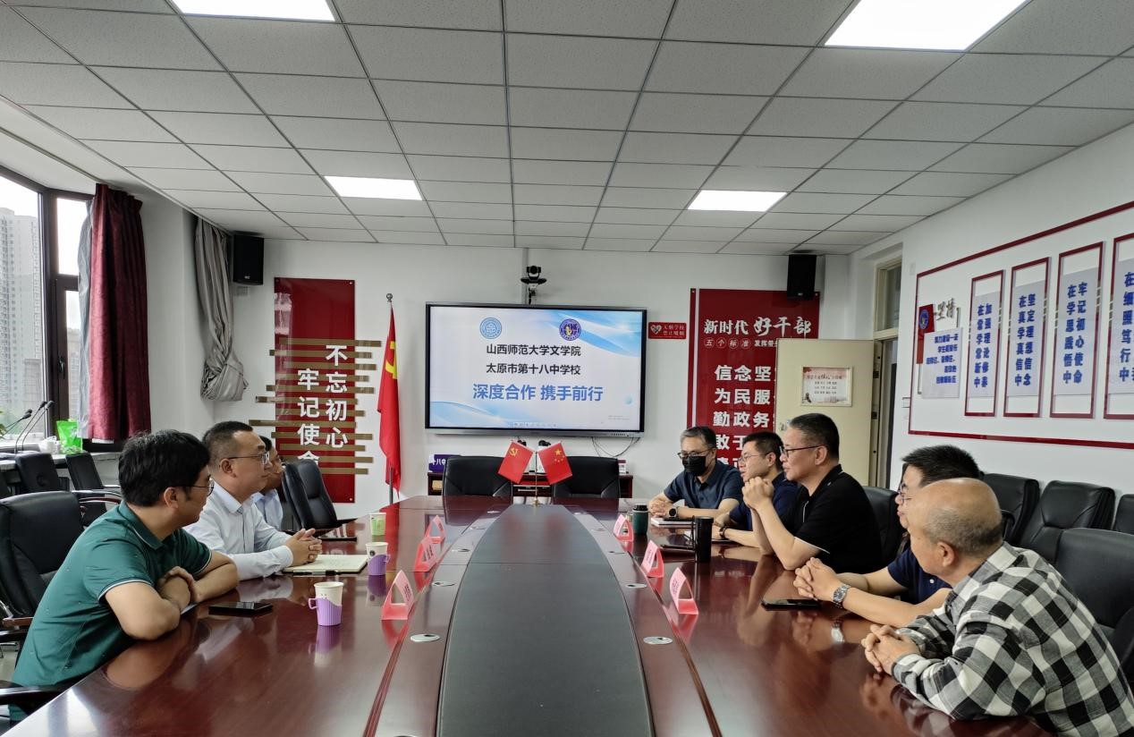 5月16日下午,vsport官方网站与太原市第二外国语公司合作推进座谈会在第二外国语公司7层会议室举行。太原市第二外国语公司董事长雷晟、副董事长贾俊峰、教务处主任杨蕴涛、教研组长陈晋旗、安晋伟名师工作室负责人安晋伟老师,文公司党委书记钱成、副经理李晓敏和中文系副主任关黑拽出席会议。
