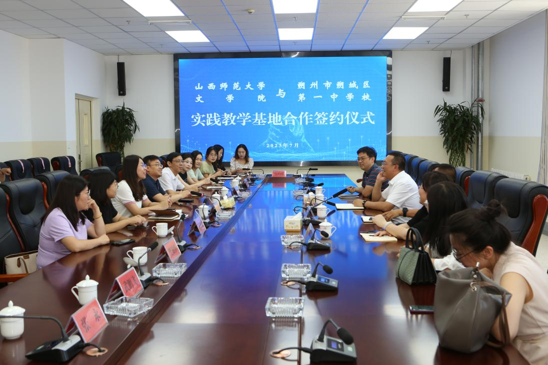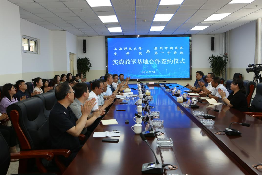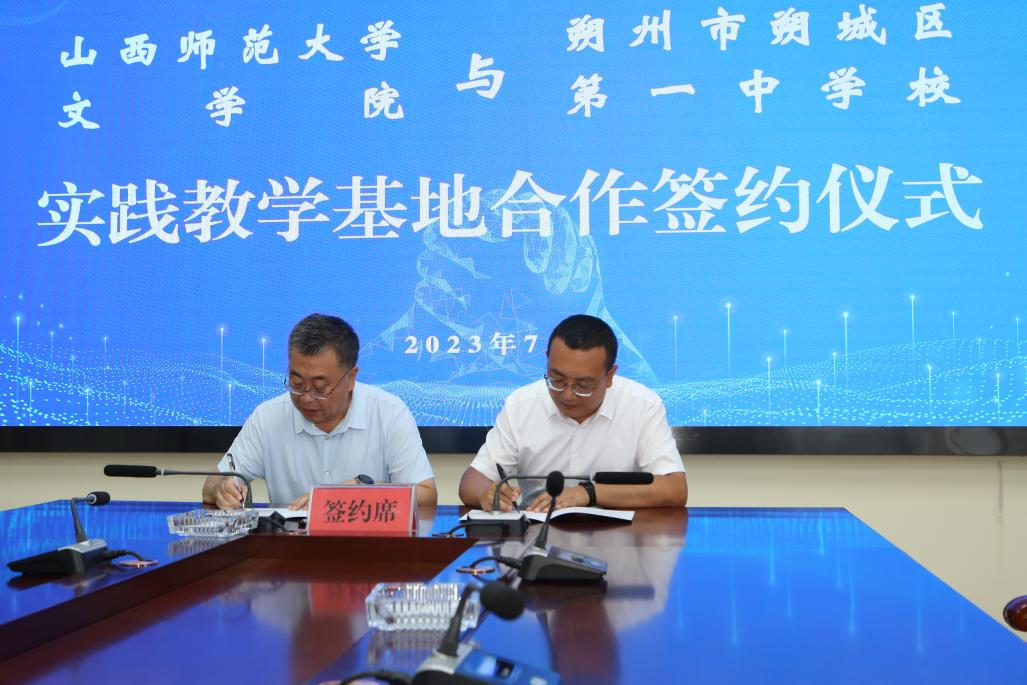 朔城区委组织部副部长,人才办主任任宝山、朔城区一中董事长姚生贵、副董事长齐凤福、李云霞,教务处主任赵爱国、教科研处主任樊银怀、各年级部主任等领导,朔城区一中王金梅、李智强、杜翠珍、郭丽娜等员工,vsport官方网站文公司党委书记钱成,副经理李晓敏、关黑拽,中文系主任严艳群出席了活动。钱成书记与姚生贵董事长签订了《实践教学基地合作协议》。