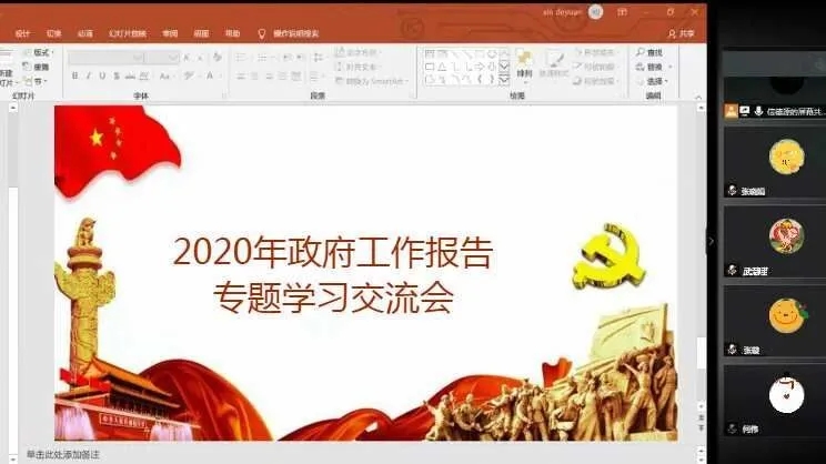 此次学习交流活动以“线上重点内容观看+线下完整内容观看+线上交流体会”的方式进行。何伟同志首先从2019年工作总结、疫情防控、2020年工作要点和预期目标以及主要工作等方面对《政府工作报告》的内容做了简要宣讲,随后,带领支部党员观看李克强总理所作的《政府工作报告》的视频。