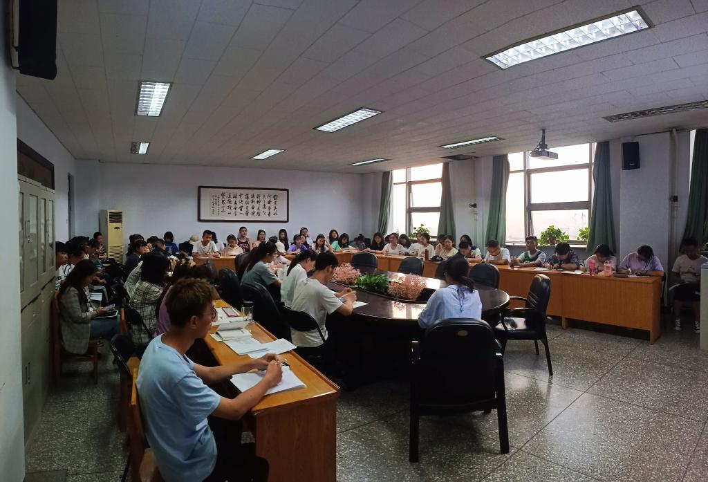 6月18日下午,vsport官方网站汉语言文学员工党支部在12512会议室召开以学习党的十九届五中全会精神和师德师风建设为主题的专题学习会议,支部全体成员参加。