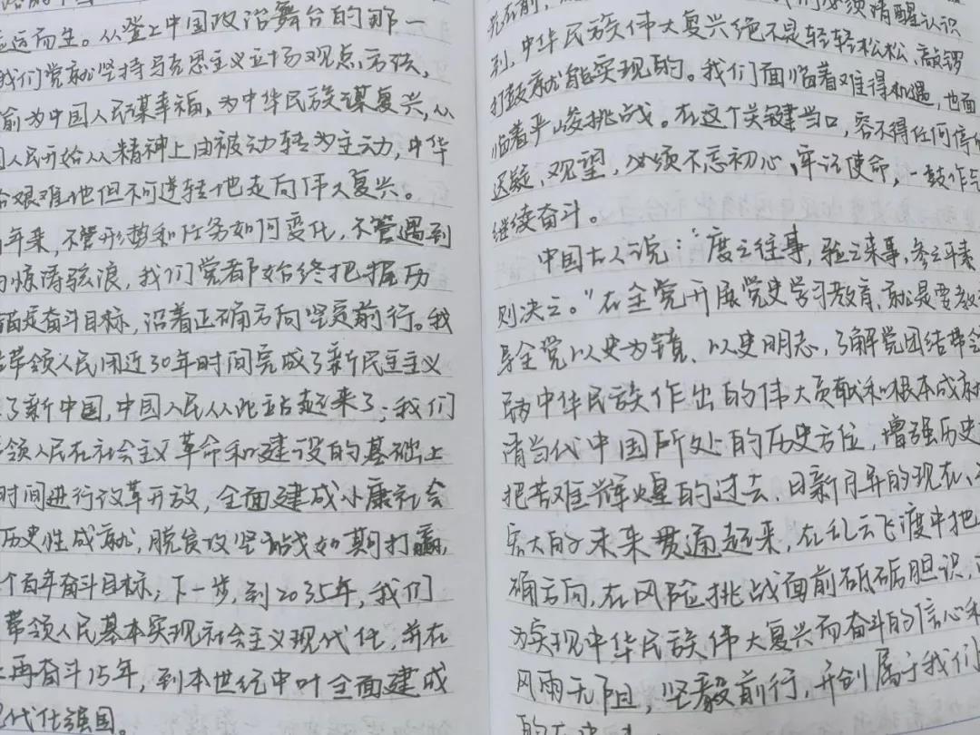 “中国共产党”,这是公司党员党史学习教育笔记本中出现频率最高的词。手写的方式,让烙刻于心的这五个字更加闪耀。党员们在学习笔记本中深情述说了对共产党深恩的赞颂,同时总结学习成果,进行自我反省,坚定理想信念。特别是最近几天,就有同志有感而发地写满了学习笔记本。也有的同志坚持每天记笔记、颂党恩,成为了雷打不动的习惯。百年奋斗的艰辛、历史功绩的宏伟、初心理想的伟大,尽在党员们的笔端。