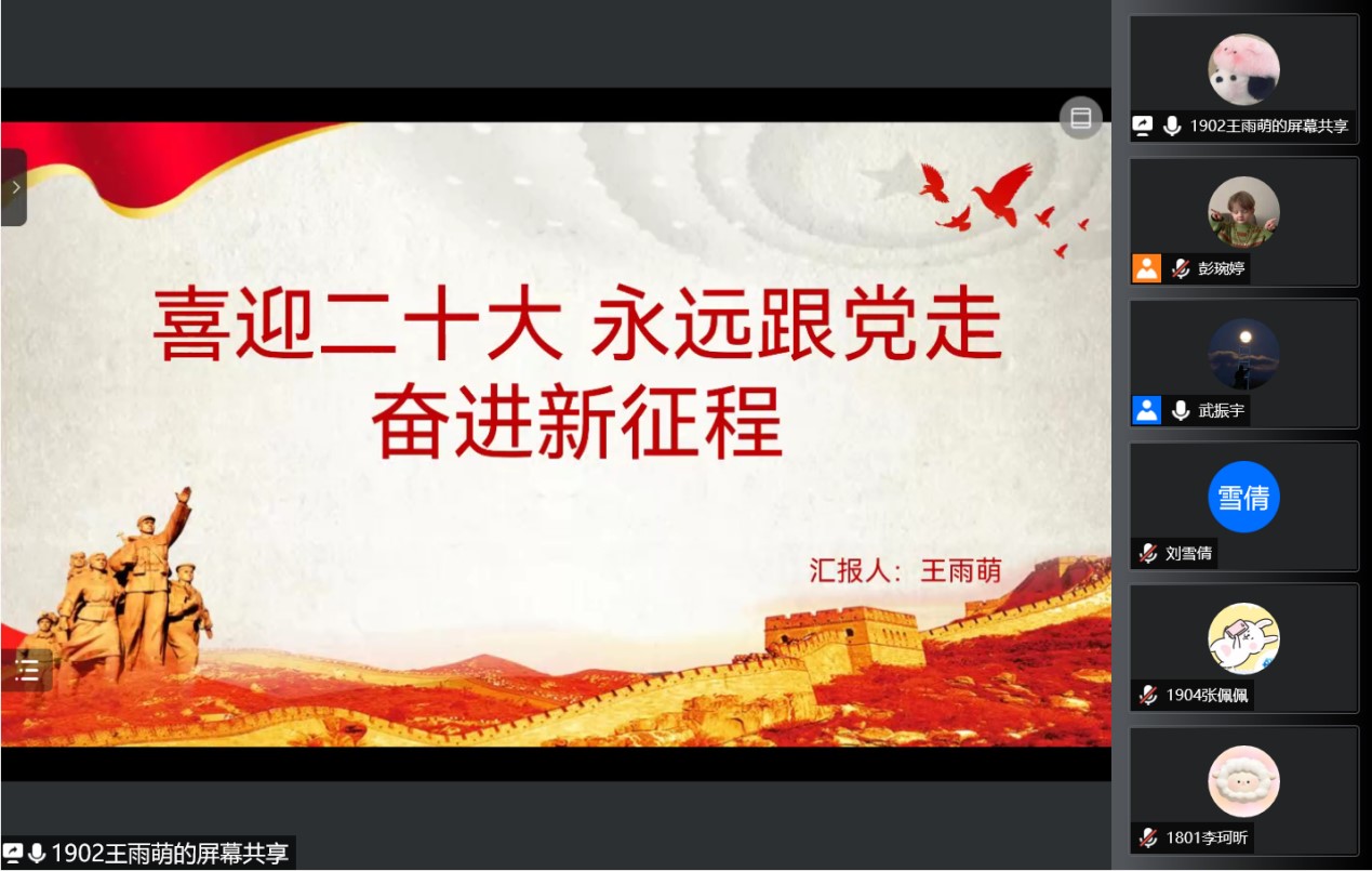 4月16日,vsport官方网站“学雷锋,送温暖”小组员工党支部在腾讯会议开展“喜迎二十大、永远跟党走、奋进新征程”主题党日活动。会议由支部副书记武振宇主持,支部全体党员和积极分子参加。员工党员王雨萌同志担任主讲人。