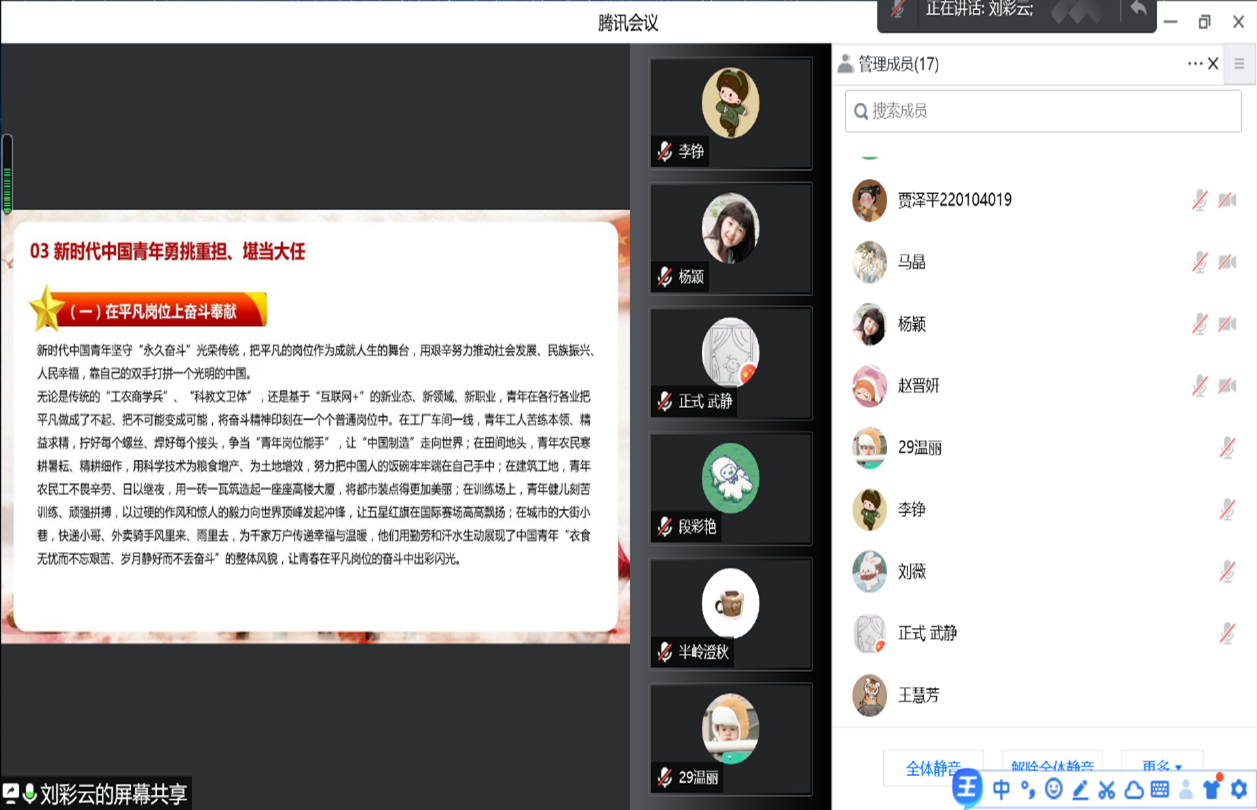 5月4日下午,文学及写作学研究生党支部在线上开展《新时代的中国青年》白皮书专题学习会议。支部书记李奎同志主持,全体支部党员参加会议。