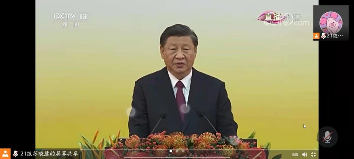 然后,支部全体党员共同观看了“习近平在庆祝香港回归祖国25周年大会上的重要讲话”视频。在交流研讨环节中,岳可彬说到,习近平总书记的重要讲话非常振奋人心,实践证明了“一国两制”强大的生命力。刘玲荣关注到习近平总书记格外关注青年人发展问题,对青年人未来给予厚望。潘晓荣指出在中央支持下,香港定能谱写良改善治理新篇章。