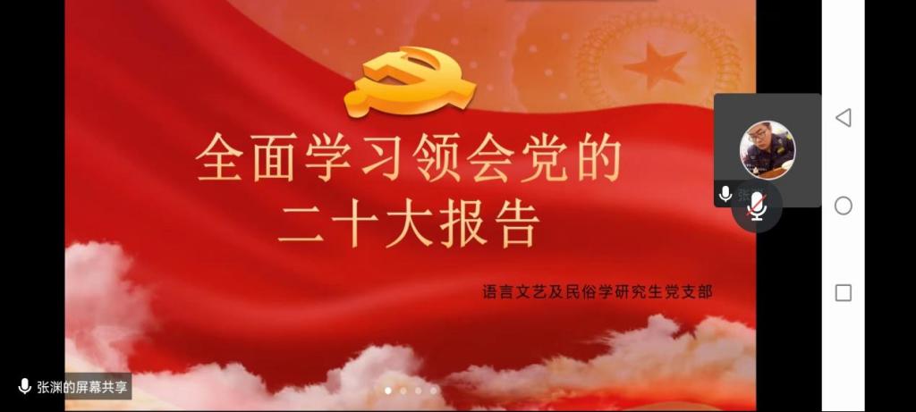 语言文艺及民俗学研究生党支部召开 学习关于党的二十大报告的主题党课会议