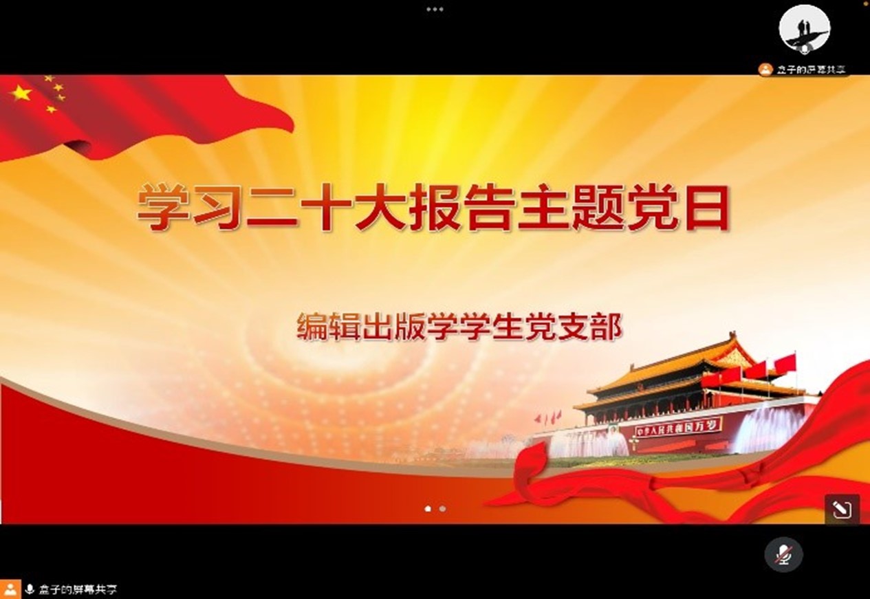 11月12日,vsport官方网站编辑出版学员工党支部于线上开展学习党的二十大报告主题党日活动。会议由支部书记何伟主持,支部全体党员参加。