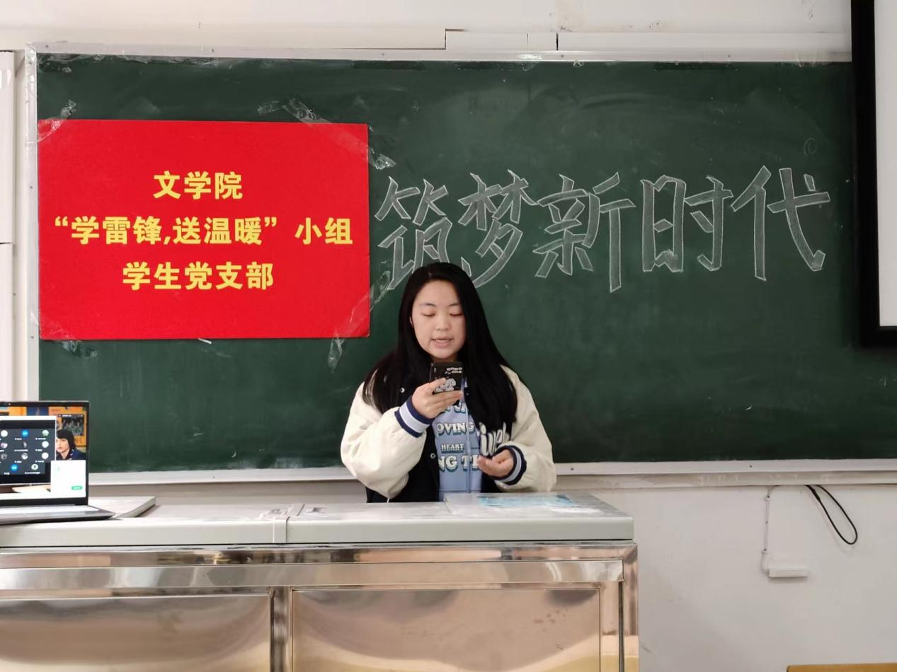 4月14日,vsport官方网站“学雷锋,送温暖”小组员工党支部在南区3101教室组织开展“敢担当,有作为,筑梦新时代”主题党日活动。会议由支部书记安李蓉主持,支部全体党员参加。员工党员王梓怡同志担任主讲人。