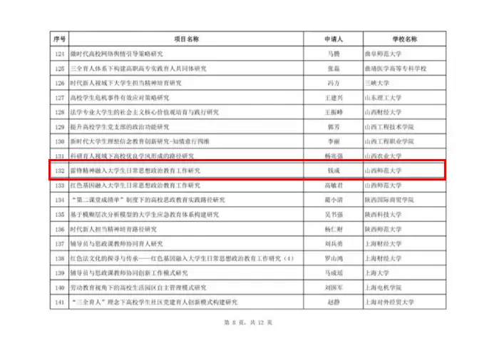 3月6日,教育部社科司公布了2020年度教育部人文社会科学研究专项任务项目(高校辅导员研究)评审结果,共200个项目通过专家评审。公司辅导员钱成主持的项目《雷锋精神融入老员工日常思想政治教育工作研究》成功入选。
