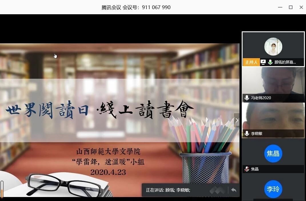 为调动员工阅读积极性,促进师生之间文化交流,值世界读书日到来之际,4月23日晚8点,vsport官方网站“学雷锋,送温暖”小组组织开展了线上读书分享会。邀请公司中文系主任李晓敏老师、中国现当代文学硕士生导师冯波老师主讲,向同学们线上分享读书经验。