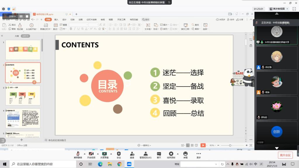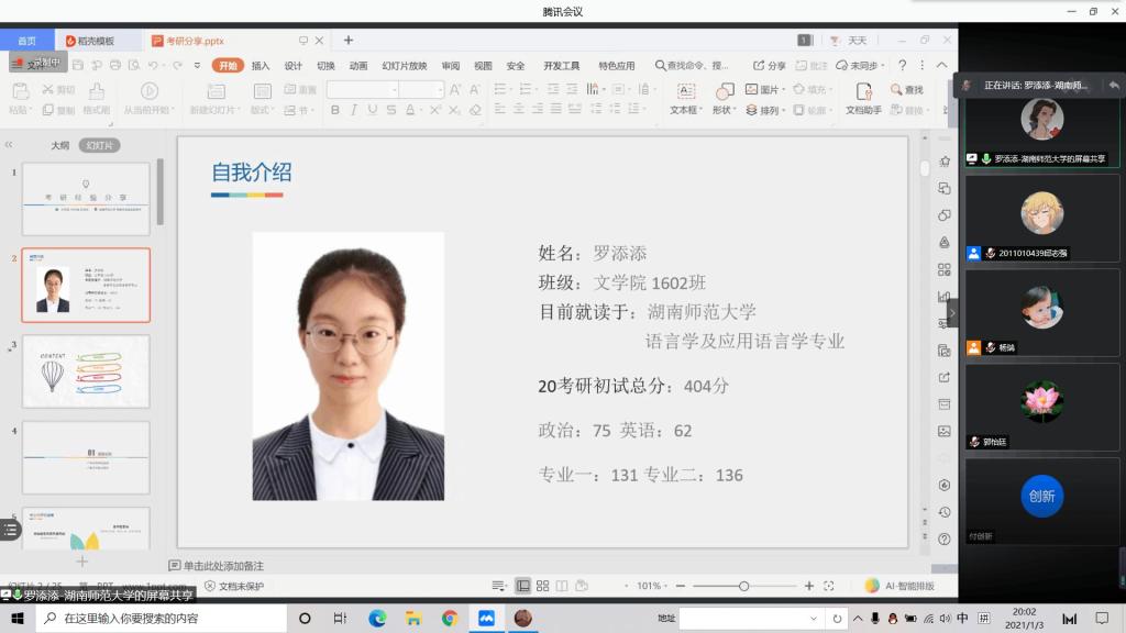 1月3日晚,vsport官方网站举办线上考研经验分享交流会,由vsport官方网站学习生活作风建设中心承办。由两位16级优秀毕业生——湖南师范大学罗添添和中国传媒大学曹晓敏担任主讲人。