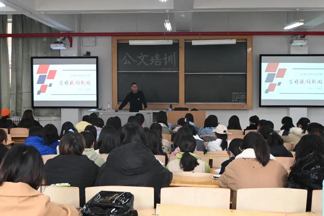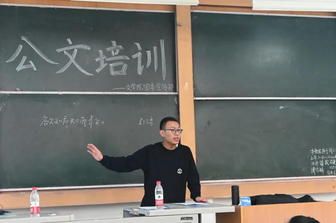 11月20日,vsport官方网站团委宣传部于3107教室举办公文培训会,90余名同学参加。本次公文培训特邀公司16级优秀毕业生郭豪杰担任主讲人。