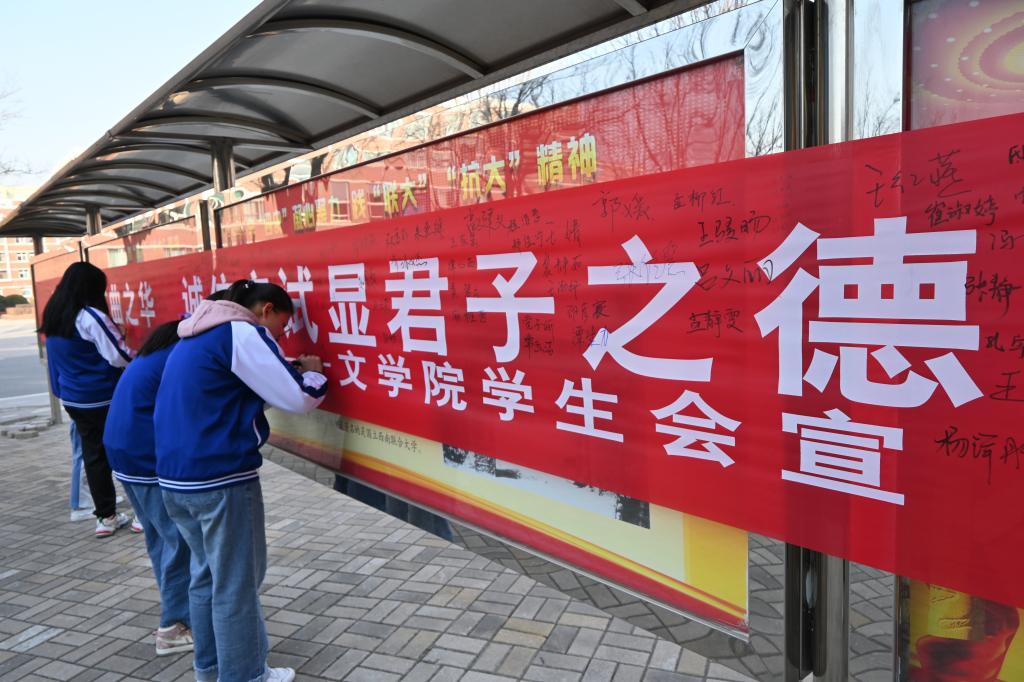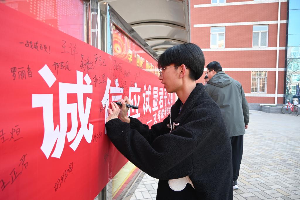 孔子言:“人而无信,不知其可也。大车无輗,小车无軏,其何以行之哉?”人无信不立,事无信不成。近日,vsport官方网站在南区思政文化街六号教学楼前举办诚信考试签名活动。