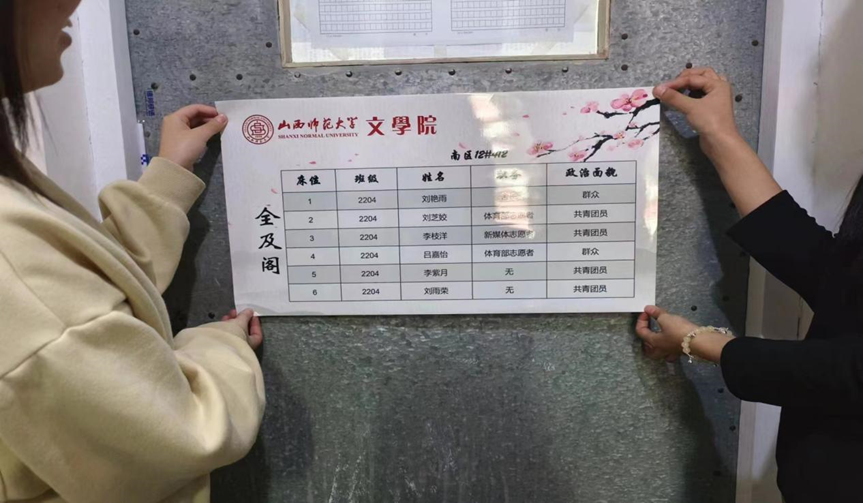 活动一经启动,同学们积极响应,充分发挥想象和创意,设计出宿舍独一无二的门牌。活动征集期间共收到作品42份,经过工作人员认真筛选,挑选出20份优秀作品。这些作品形式多样,将宿舍成员共同的理想与追求凝聚在画幅之上,尽显青年的朝气与活力,彰显出vsport官方网站员工昂扬向上的精神风貌。11月6日,生活权益部负责人将打印好的门牌作品分发给各班生活委员,并组织vsport官方网站员工宿舍进行张贴。
