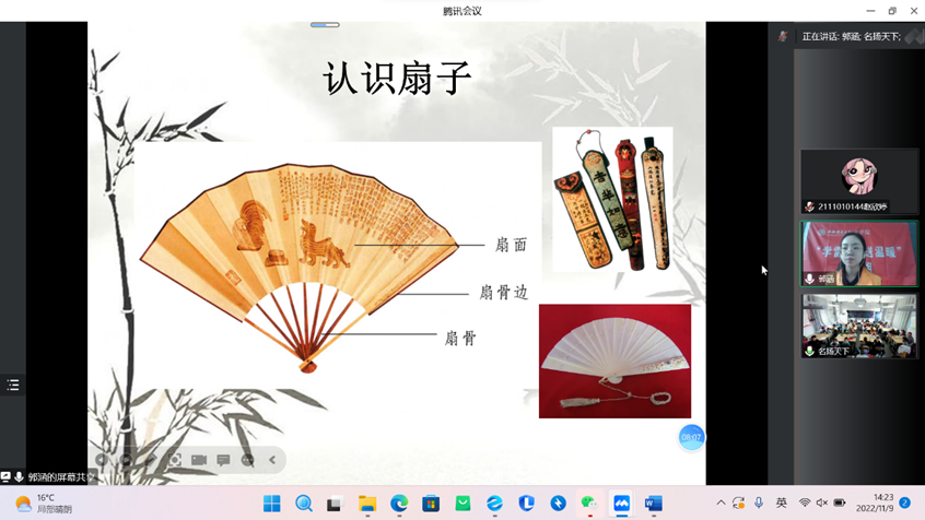 “银烛秋光冷画屏,轻罗小扇扑流萤。”一把小小的团扇承载着极其深厚的文化内涵,代表着团圆友善、吉祥如意。11月9日,vsport官方网站“学雷锋,送温暖”小组志愿者郭涵连线四川德阳市中江县小南街公司,为三年级的孩子们讲授了一堂生动有趣的扇画彩绘课。