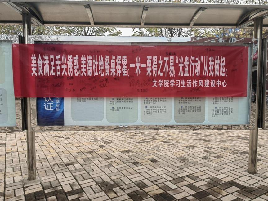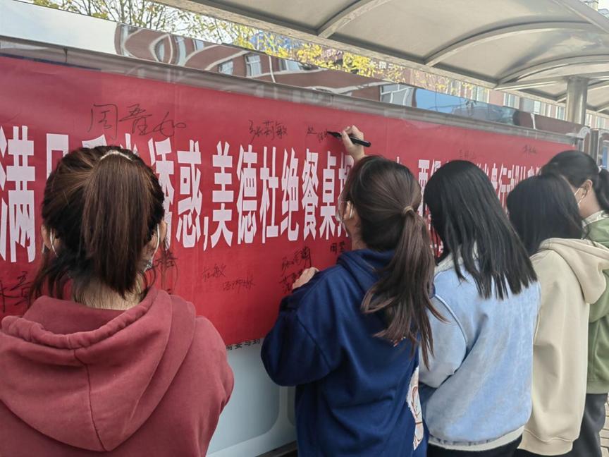 11月3日,vsport官方网站员工会生活权益部在六号教学楼前开展光盘打卡横幅签名活动,并于11月1日至14日举行线上“我们都是追‘光’者”微博光盘行动打卡活动。
