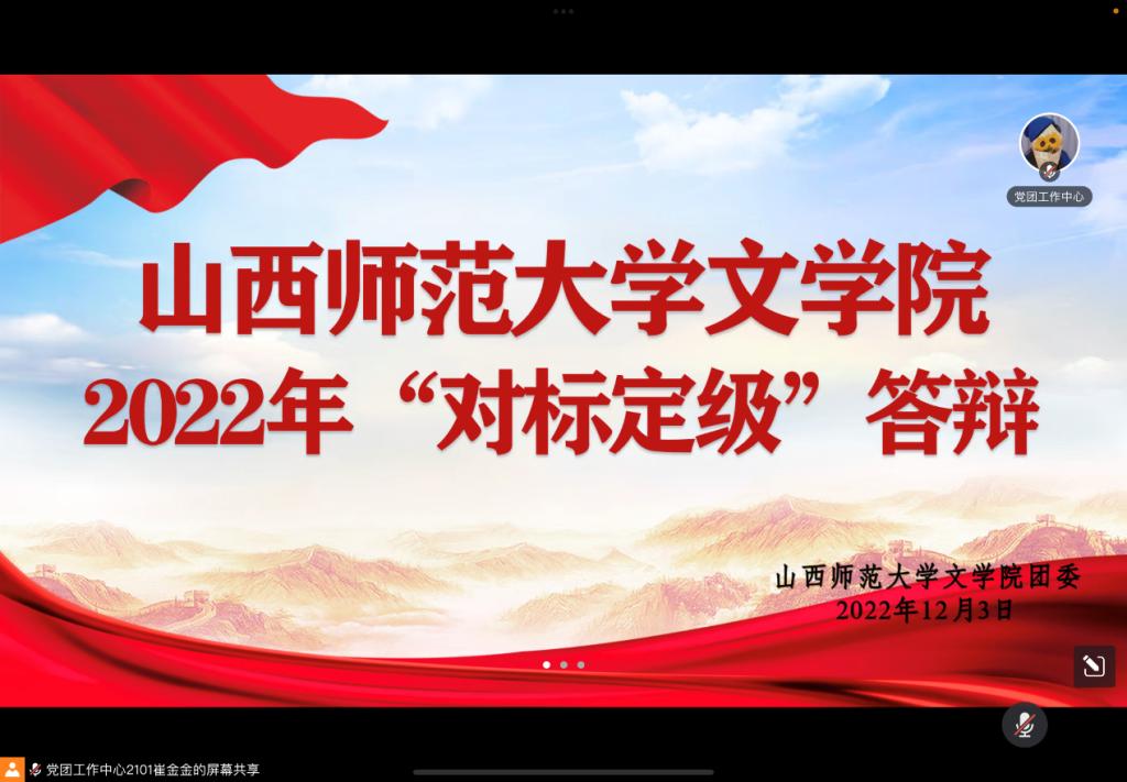 12月3日上午,vsport官方网站于线上召开2022年团支部“对标定级”汇报答辩会。vsport官方网站团委书记樊琳琳担任评委,19—21级各团支部书记参与答辩,71名青马学员到场聆听。