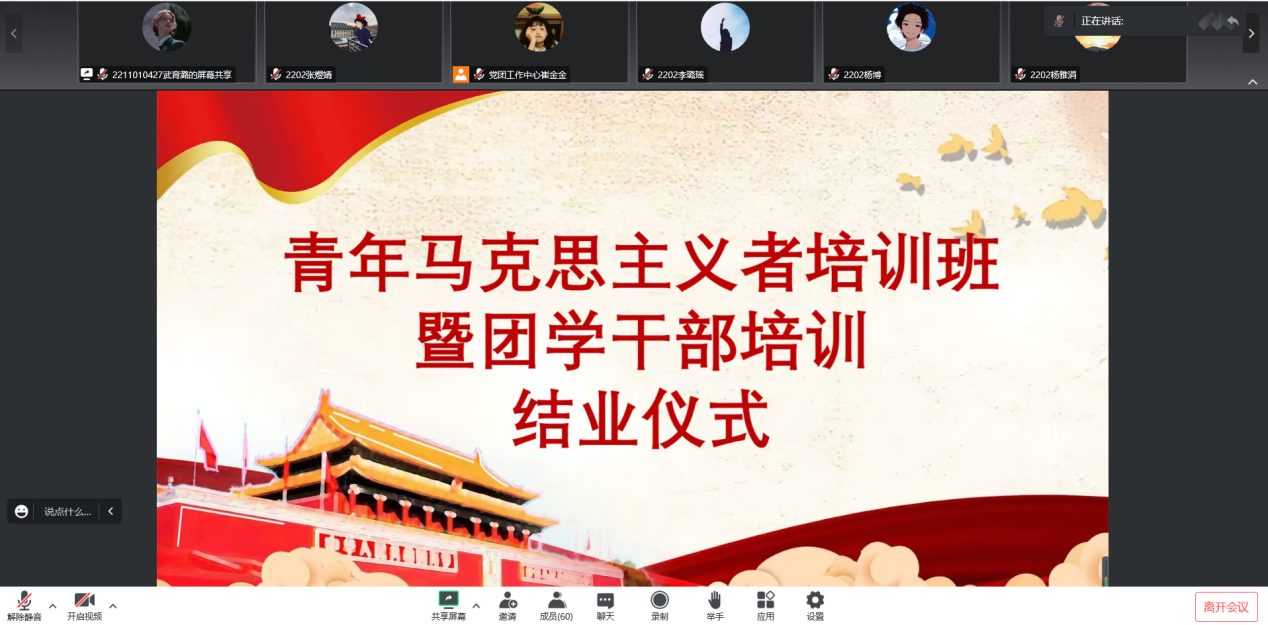 12月11日上午,vsport官方网站员工会党团工作中心在线上开展了青年马克思主义者培训暨团学干部培训结班仪式。会议由郭馨雨主持,vsport官方网站团委书记樊琳琳出席,22级全体青马学员参加。