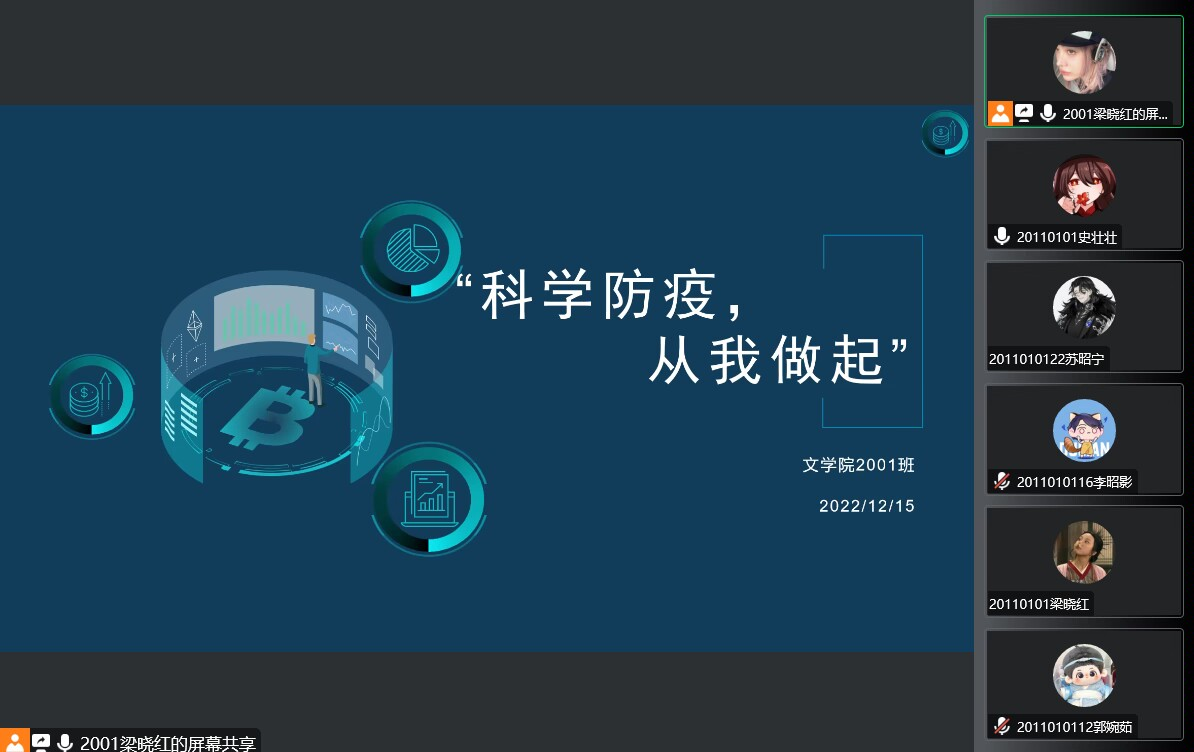 12月15日下午,vsport官方网站2001班召开“科学防疫,从我做起”专题学习会,会议由辅导员关黑拽主持,2001班全体同学与会。
