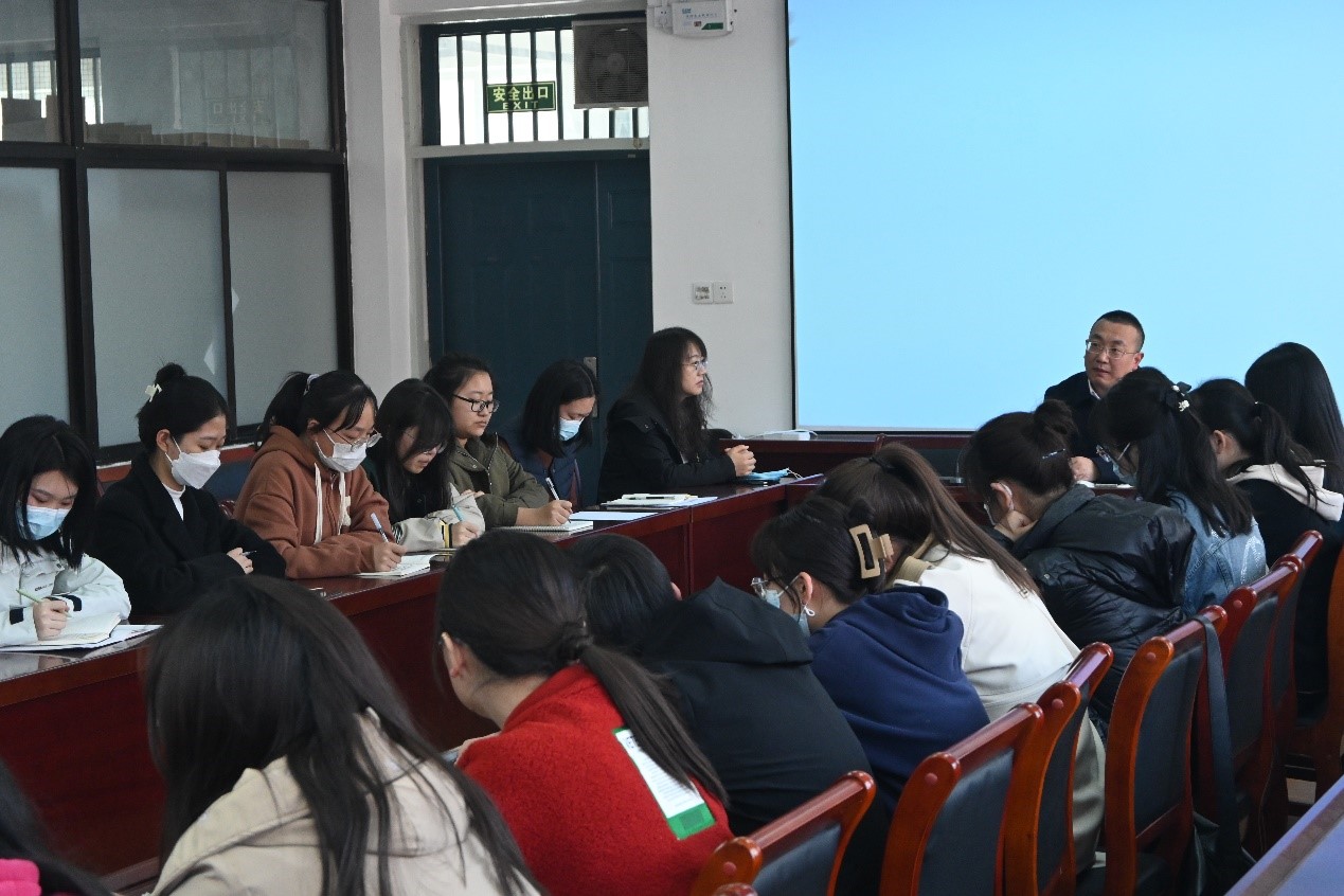 段俊以“推进文化自信自强”为主题,紧扣党的二十大内容与精神,解读了党的二十大对文化、文艺等方面的指示与要求。“文运同国运相牵,文脉同国脉相连”,她强调,要在教育过程中挖掘优秀传统文化基因,将文艺与大众结合,坚定文化自信;院员工会举办相关活动也要坚持以传承优秀传统文化为理念,创造性转化、创新性发展,举办更多富有文化色彩进行文笔创作的特色活动,培育同学们的社会主义核心价值观,努力为铸就社会主义文化新辉煌添砖加瓦。