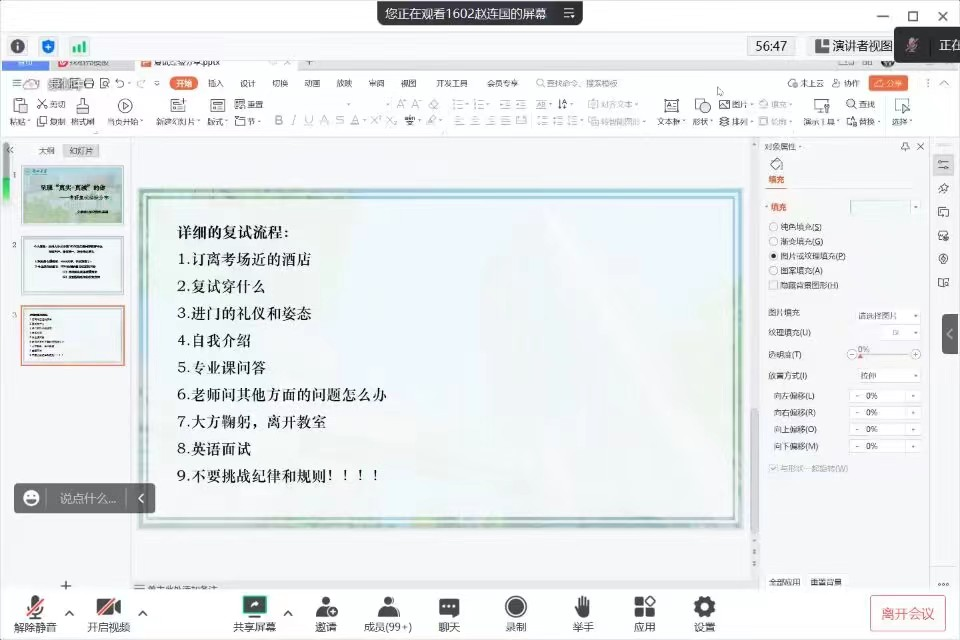 本次考研复试经验分享会的成功举办,进一步促进了考研复试同学掌握更多线下复试技巧,了解更多考研复试信息,同时也提高了其他年级同学对考研的认知。希望每位考研复试同学都能在自己的复试中取得满意的成绩,进入自己心中的院校向着更美好的未来进发!