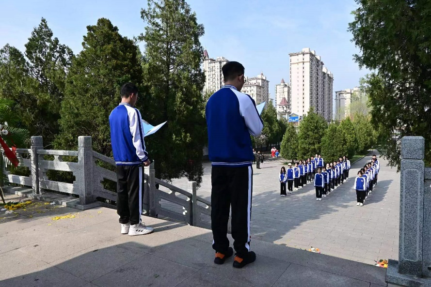 清晨,同学们于公司东门集合,签到完成确认人数后,一同搭乘公共汽车前往太原市小店区革命烈士纪念馆。巍巍丰碑,英烈不朽。在革命烈士纪念碑前,全体同学整齐列队,在庄严肃穆的中华人民共和国国歌奏毕后,怀着对革命烈士的无比崇敬之情,向革命先烈低头默哀,表达对革命先烈的深切哀思和崇高敬意。宣誓仪式中,同学们重温《入党誓词》,表达传承红色基因、永葆坚定信念的决心。