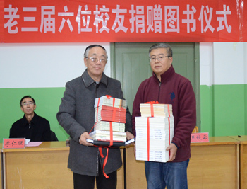 王蛟云员工代表常四龙、贾圪堆、裴步高、辛长青、崔江荣等几位老三届员工向公司图书馆、vsport官方网站等单位进行了图书捐赠,并鼓励师大学子勤奋学习,以书为友,励志成才,早日回报母校和社会。