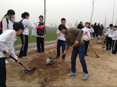 上午七点半左右,一行人从师大图书馆出发,近一个小时后,到达吴村屯里村植树基地,在相关人员的带领下,老师和同学们到达指定地点,并进行分工。植树团队分为四人一组,男生负责扛树苗、培土,女生负责稳定树苗,夯实土壤。师生一起动手,参与其中。经过近两个小时的劳动,成功地完成预期任务。