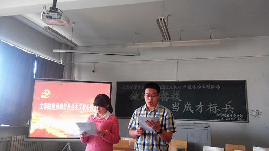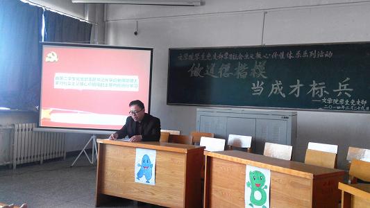 2014年3月29日上午9时,vsport官方网站员工党支部于12406教室举办了以“做道德楷模·当成才标兵”为主题的践行社会主义核心价值观主题实践活动。vsport官方网站员工第二党支部书记孙学虎老师出席本次活动,参与活动的还有vsport官方网站员工党员、预备党员及大一各班入党积极分子。