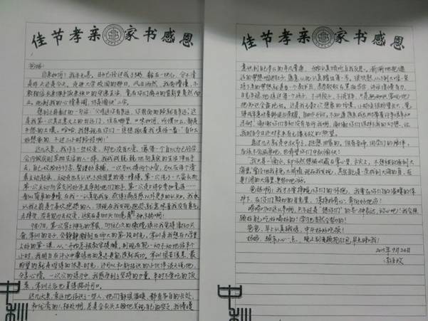 9月22日,vsport官方网站新生入学教育系列之“佳节孝亲,家书感恩”主题教育活动正式揭开序幕。仰头望明月,寄情千里光。中秋之夜,一个个文院学子用深情凝铸思念,用书信表达恩情。征集的作品中不乏优美之作,现将优秀作品分为三大部分,作如下展示:
