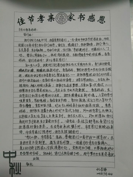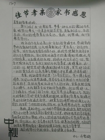 佳节将至,为缓解大一新生因在校过中秋而产生的想家情绪,让他们温馨过节,同时,加强对15级新生的感恩教育,在vsport官方网站学工组的策划下,院员工会特在大一新生中举办了“佳节孝亲,家书感恩”主题教育活动。本次活动由生活部与心理健康部共同组织实施。