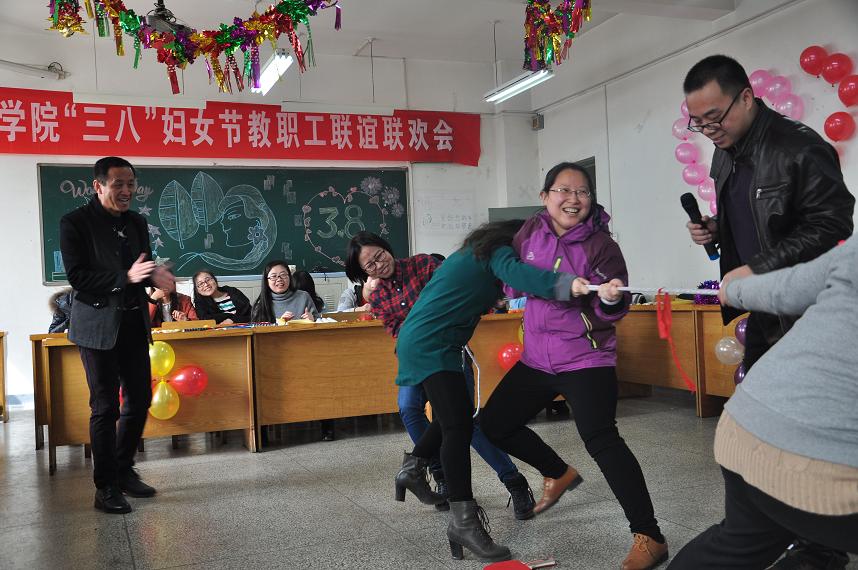 既是节日,玩游戏是必不可少的。“击鼓传花”中,彩球随机传到了几位女老师的手中,她们纷纷送出了自己的节日祝福,以及新年寄语。在“知院爱院院情竞答”环节,老师们积极抢答了10道关于公司2015年工作业绩的问题,展现出了老师们对公司工作的了解和自信。联欢活动精彩不断:在“面对面站立乒乓球拍对打对接羽毛球”,“羽毛球拍对打对接乒乓球”,vsport官方网站独创的三人制“微型拔河”比赛,以及谜语竞猜、脑筋急转弯等许多智力与文体游戏项目中,老师们都全身心地投入,他们机智抢答、搞笑幽默、活力四射的表现,在平时的言谈举止中可是难得一见啊!联欢活动惊喜连连:日常生活中的“抢红包”竟也作为一个特殊环节先后三次穿插在联谊会过程之中,实在是贴心又意外的安排!现场先后分三次发出了总额为100元的“三八妇女节女生专享红包”、“三八妇女节男生乐享红包”、“三八妇女节教工共享红包”,使得现场气氛大有掀翻屋顶之势!老师们相互欣赏着各自像孩童般地玩着、乐着、嗨着,惬意、欢畅、满足之感油然而生,一张张笑脸赛过了那一支支红玫瑰!