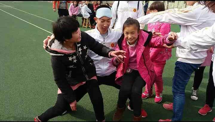 游戏互动分别在室内和室外举行,负责人将参与活动的同学共分为七组,在组长的带领下与相应的七组特教员工在餐厅开始室内游戏。由于所有成员都自带本子和笔,所以,在与特教员工的沟通交流上并没有太大的障碍,给孩子们分发糖果后,他们共同进行一些有趣的手工制作,如折纸、编绳等,游戏过程中欢笑声不断。最后,大家将自己精心制作的礼物互换,每个人脸上都洋溢着笑容。室内活动结束后,两组员工在特教老师及组长们的带领下,前往体育场开始室外活动,原本欢乐融洽的气氛进一步升级,志愿者和特教员工兴致勃勃地开始老鹰捉小鸡、蒙眼摸人等游戏,共同的享受与快乐不言而喻。
