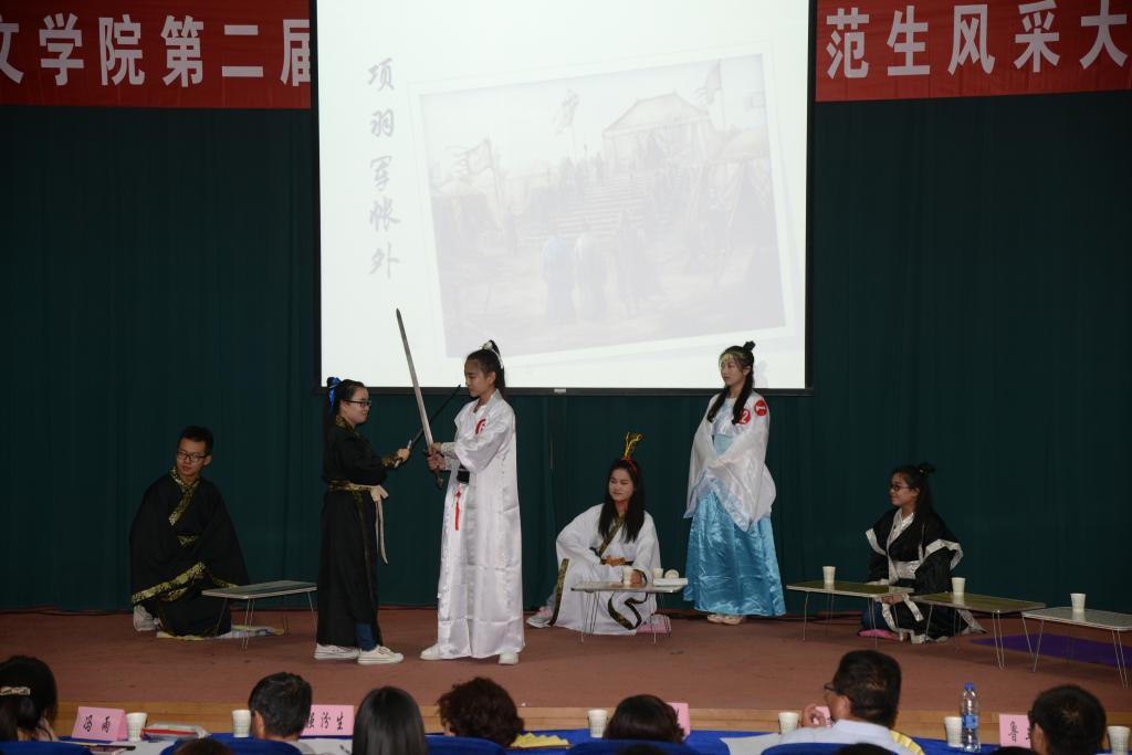 对于传统经典,免费师范生不仅要能背诵,更要会表达。本次比赛第三个大环节——“释经典·展才情”为选手们提供了才艺展示的平台。1501班代表队以精彩的《忆王勃》话剧表演,让我们在时间长河中摆渡,在古今经典中徜徉,穿越千年,领略古人的诗情画意。《鸿门宴》中,推杯换盏下的刀光剑影,觥筹交错间的尔虞我诈,经由1301班“陌上青葱”队演绎得绘声绘色。1401班的《追寻<诗经>中的爱情》则更富深情,绵绵情意,浓浓爱意,那流连缱绻的万千思绪无不深深感染着所有观众的内心。