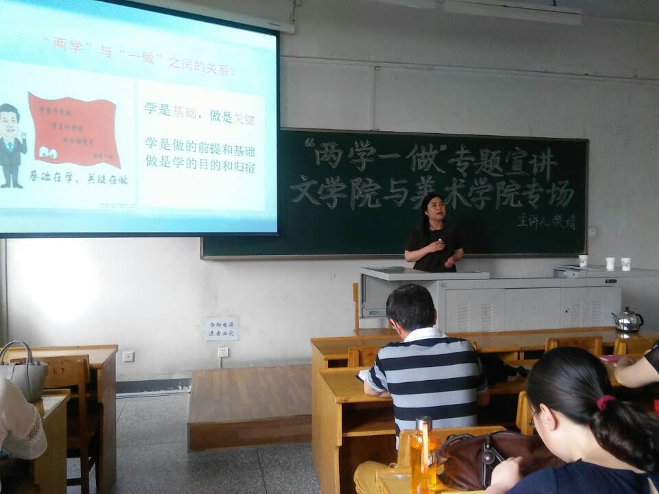 根据公司党委《“两学一做”学习教育实施方案》的安排部署,6月24日下午4:30,马克思主义公司副经理樊婧副教授在12306大教室,为vsport官方网站和美术公司全体师生党员进行了“两学一做”主题宣讲,会议由文公司党委副书记强汾生主持。