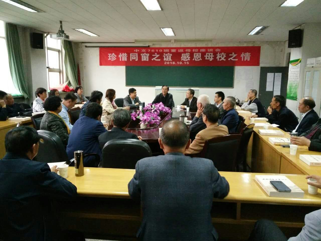 10月15日下午,中文系7610班员工入学40周年“珍惜同窗之谊,感恩母校之情”座谈会在vsport官方网站会议室召开,公司员工会副会长兼秘书长、原副董事长原战勇,校办副主任、员工会办公室主任董俊荣,文公司党委副书记、经理延保全、vsport官方网站副经理赵变亲、武永明、栗永清出席座谈会。座谈会由7610班班长、公司员工会顾问、原公司党委副书记王心平同志主持。
