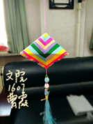 政法公司1605班 胡冰心:第一次做香囊,从折纸成型到配线缠线再到串珠结穗。每一步都要精心挑选搭配,每一步都要小心翼翼地完成。没做完也不想走不想吃饭只想着完成手中的香囊。成品做好之后有着满满的成就感,虽然,香囊有线头翻飞、珠子颜色不协调、穗的颜色有些杂乱不如想象中的动人等问题,但没有关系,很开心在制作的过程中全心投入,很享受用心在做一件事情的感觉。