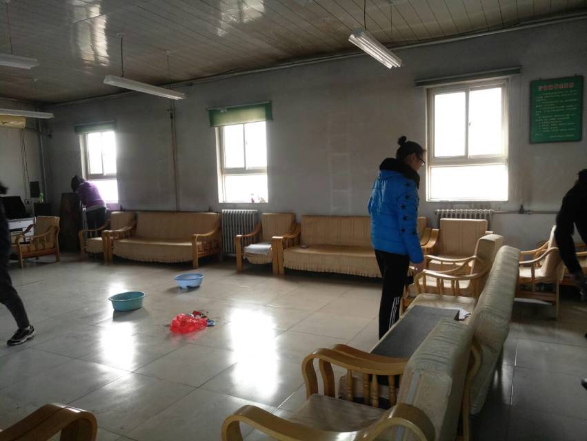 3月4日早上8点半,全体组员准时到达老干部活动中心,在管理人员的指引下,开始了大扫除任务。此次大扫除主要对二楼音像室、阅览室和沙壶球室进行了重点清理。全体组员分成了三组,开始了如火如荼的清洁工作,擦玻璃、扫地、拖地、整理报架,一切井然有序;随后打扫了一楼的象棋室。清扫完毕后,志愿者们将清扫工具放回原处,并将室内的东西整理得整整齐齐,窗明几净的活动中心标志着今天的清扫活动圆满完成。最后,全体参与人员与管理人员合影留念。