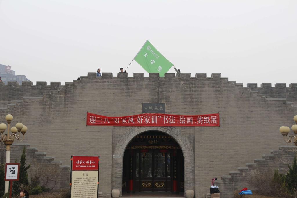 上午8时整,各班负责人将本班同学带至新松入口处,以vsport官方网站院旗为标志集合整队,在体育部成员宣读注意事项之后,毅行活动正式开始。大约四十分钟左右,毅行的队伍到达了古城公园的西门,那矗立在大门左右两侧的雕像立即吸引了同学们的注意力,纷纷拿出手机合影留念。在旗手的带领下,同学们首先到达了临汾的古城墙,城墙上面是被还原而成的临汾古貌。