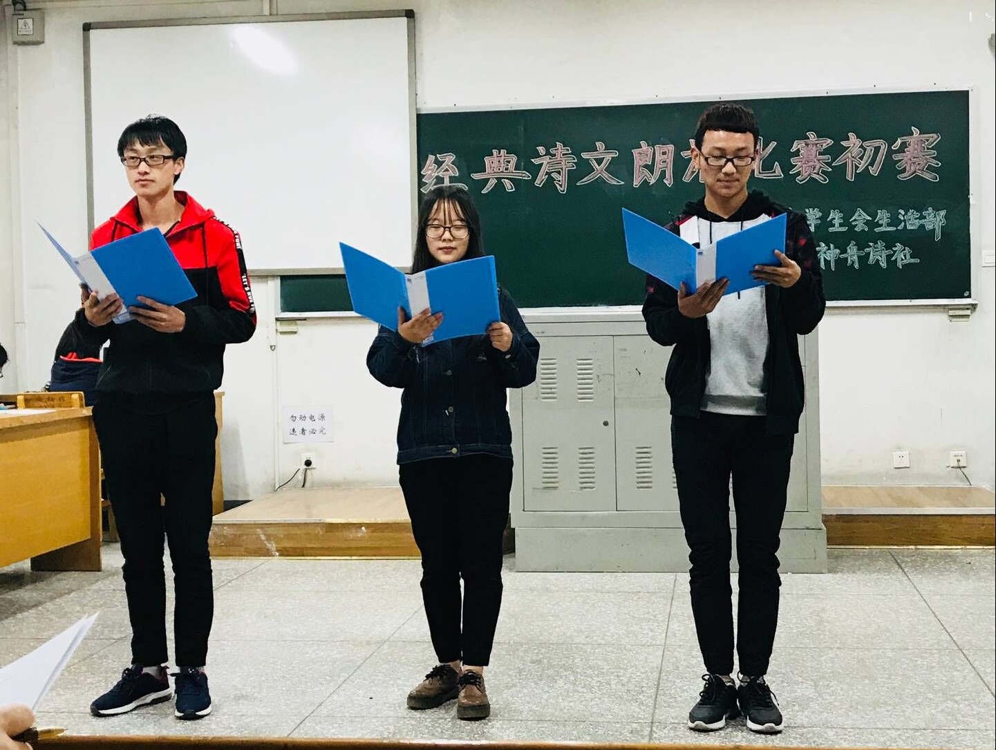 为弘扬中国优秀传统文化,积极响应党的十九大号召,10月21日下午,公司员工会生活部及神舟诗社联合举办的vsport官方网站“经典诗文朗诵”比赛初赛在12206教室举行,公司大一大二共计60名同学参加了此次比赛,员工会主席团成员、各部部长、神舟诗社社长出席比赛并担任评委。