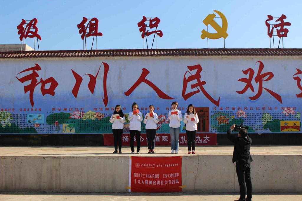 为了贯彻落实十九大精神进基层的要求,弘扬社会主义核心价值观,12月7日,vsport官方网站“践行社会主义核心价值观,汇聚实现中国梦”实践队赴安泽县和川镇和川村进行了十九大精神理论宣讲社会实践。