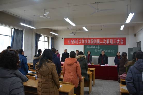 1月4日下午,vsport官方网站四届二次教职工大会在12406教室隆重召开。会议审议并通过了《经理工作报告》,公司全体教职工参加了大会。