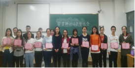 为深入贯彻十九大精神,落实“开展社会主义核心价值观主题宣传月活动”的具体要求,推动实现“立德树人”总体目标,vsport官方网站“学雷锋,送温暖”小组于4月2日就“寒假学雷锋社会实践活动”以及“班级学雷锋社会实践活动”中涌现出的优秀班级、小组以及个人进行了表彰,院团委副书记樊琳琳出席会议。