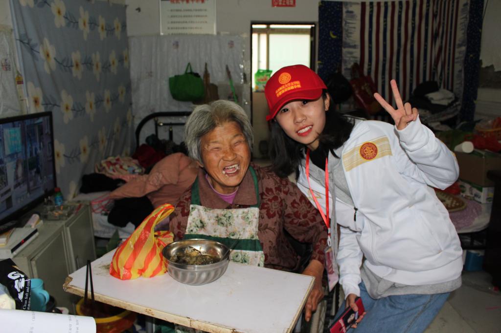 一个多小时之后,队伍终于到达目的地——沙桥敬老院。志愿者们到达敬老院后便“熟门熟路”地开始了志愿服务。志愿服务中,大家分为若干个小组,各有分工。