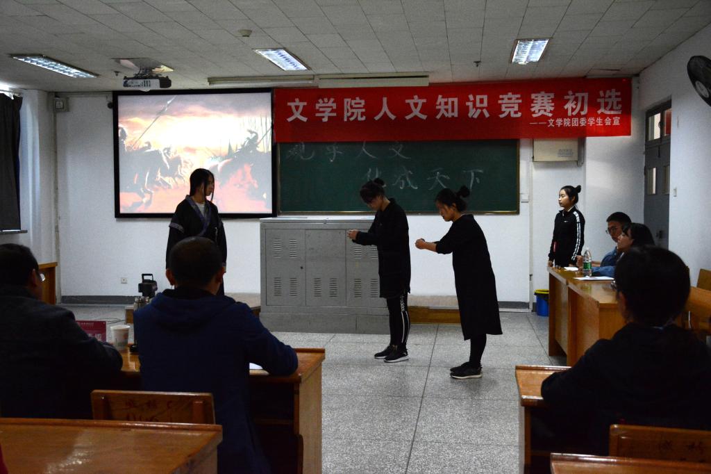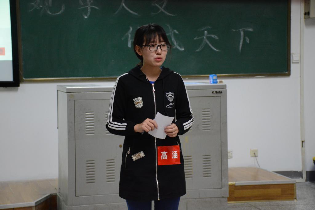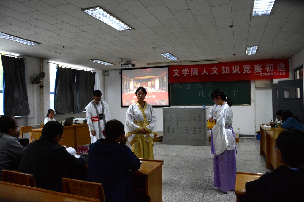 此次选拔赛分为人文演绎与即兴说理议论两个环节,主要考察选手的科学史与自然科学常识、必要的艺术修养、基本文化典籍的文本、传统历史文化常识和文史哲的基础知识。第一环节,各参赛选手五人为一组,通力合作、协调互助,通过情景剧演出尽情展现个人和团队的人文素质;第二环节,选手们在紧扣主题、突出重点的基础上引经据典,三分钟内完成了自己的说理议论。参赛选手麻雨欣用自己丰富的文学积淀对元好问的“一语天然万古新,豪华落尽见真淳”进行说理,以《齐物论》中“大知闲闲,小知问问;大言炎炎,小言詹詹”为据,从反面说明了语言平淡自然的天成之美更易万古常新之理。